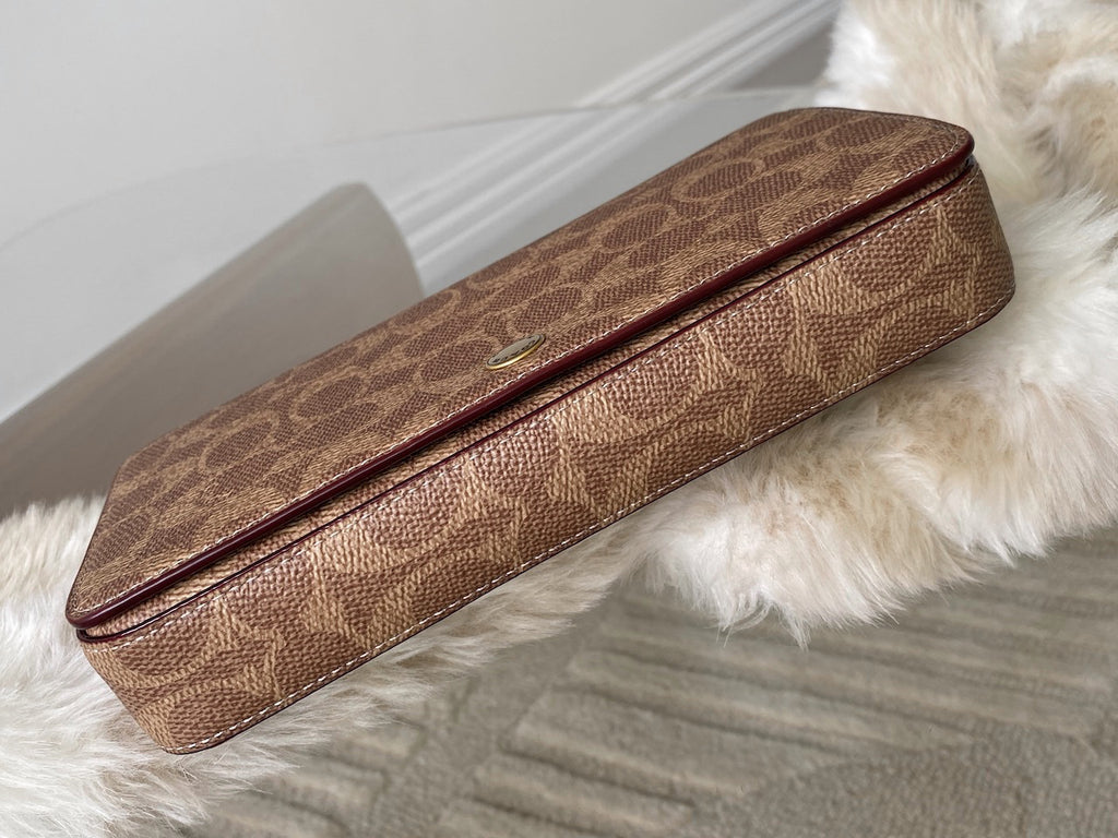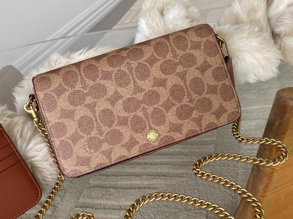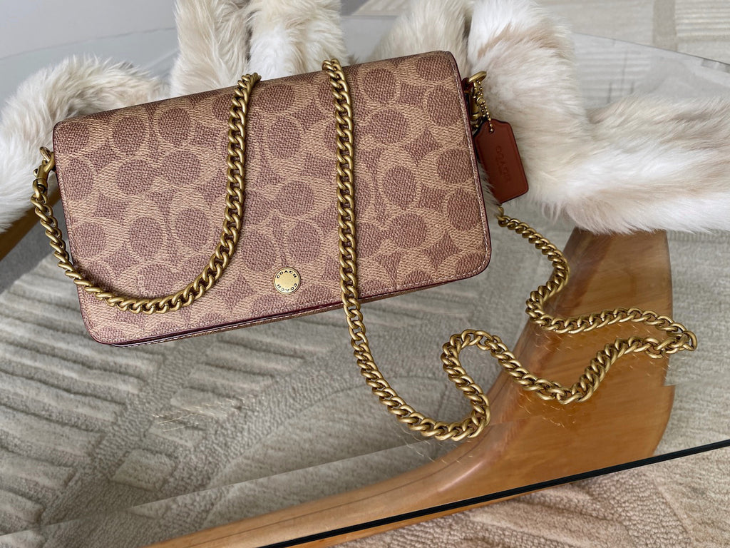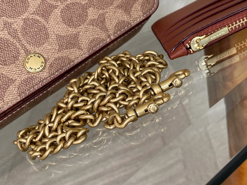 A stunning and sold out current collection edition - versatile with removable chain strap that can be doubled over for a shorter carry, or removed to transform this into a clutch. In the words of Coach: "Streamlined and structured, our Mila is a perfectly organised crossbody for everyday. Crafted of Signature canvas and refined leather. It's finished with a detachable gleaming chain strap and removable zip card case with six card slots."