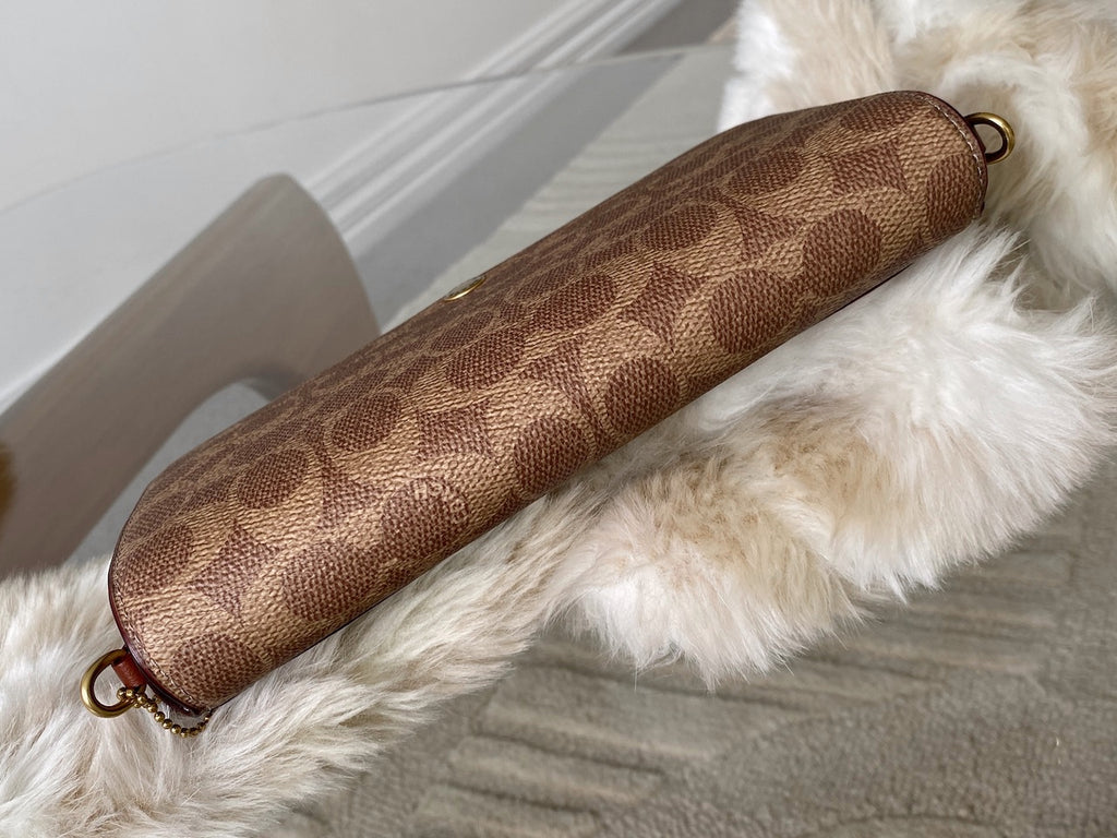 Coach Brass/Tan Caramel Signature Canvas Mila Crossbody | BNIB