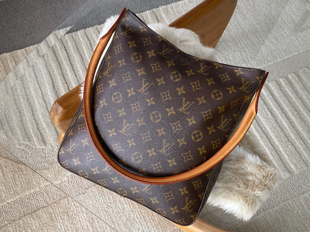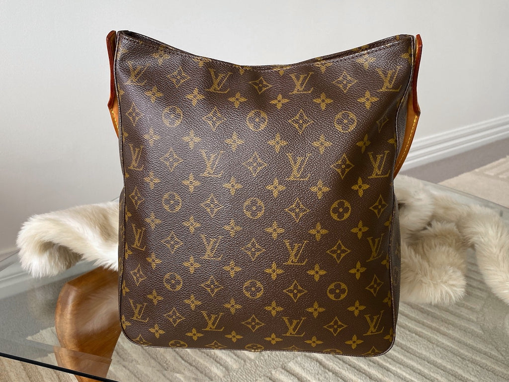 The largest of the Looping line-up, the GM is a brilliant size, easily accommodating A4, all essentials and the extras. Elegant, gorgeous clean lines and stunning interior in LV's famed Alcantra, with secure top zipper and interior D-ring to clip keys or an accessory to. The arched handle on this is shaped to perfection, comfortable to carry and designed to maintain its shape, giving it a wonderfully put together look. That combined with the timeless body in iconic Monogram make this divine beauty a classic and desirable collector's piece that is no longer available from Vuitton.
